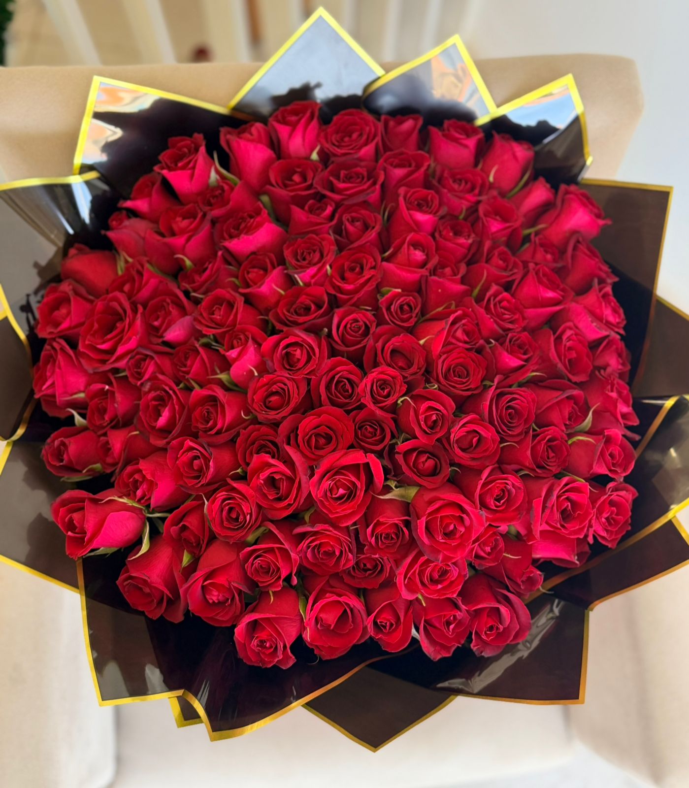 Imponente, marcante e inesquecível: buquê com 100 rosas nacionais, envolto em embalagem preta premium que valoriza ainda mais o volume e a presença. Um verdadeiro espetáculo floral, criado para surpreender e transformar qualquer momento em algo grandioso.
